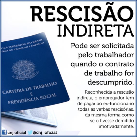 O empregado que vivenciar o descumprimento de seu contrato de trabalho e que, devido a isso, sofra prejuízos de qualquer ordem, tem o direito de entrar com o pedido de “rescisão indireta”. Nestes casos, o funcionário pede a demissão, porém recebe todos os benefícios que receberia caso tivesse sido demitido, uma espécie de justa causa do empregador.
